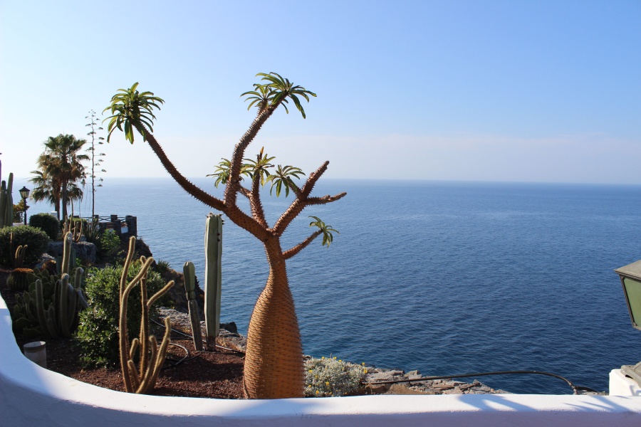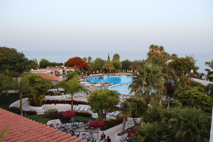 Zurück im Hotel konnte man den Blick über den Pool und den Flammenbaum bis zum Meer schweifen lassen
