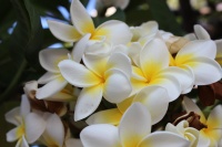 Ein blühender Plumeria Baum (Wachsblume) im Hotel